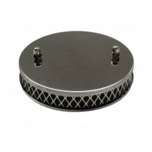 This is the classic flat (pancake) chrome air cleaner assembly with a washable air filter element. It will fit all cars using the Zenith Stromberg 150CD carburetors. The filter is 5.45 inches across with a width of 1 inch