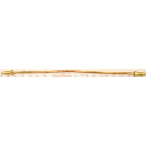 10" long pipe with 2 male ends used on front drum brakes to join the wheel cylinders. Made in easy bend copper for long life